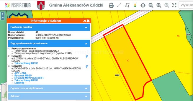 5ALEKSANDRÓW ŁÓDZKI - na sprzedaż działka budowlana o powierzchni 8 100 m2. Według MPZP jest to teren zabudowy ...